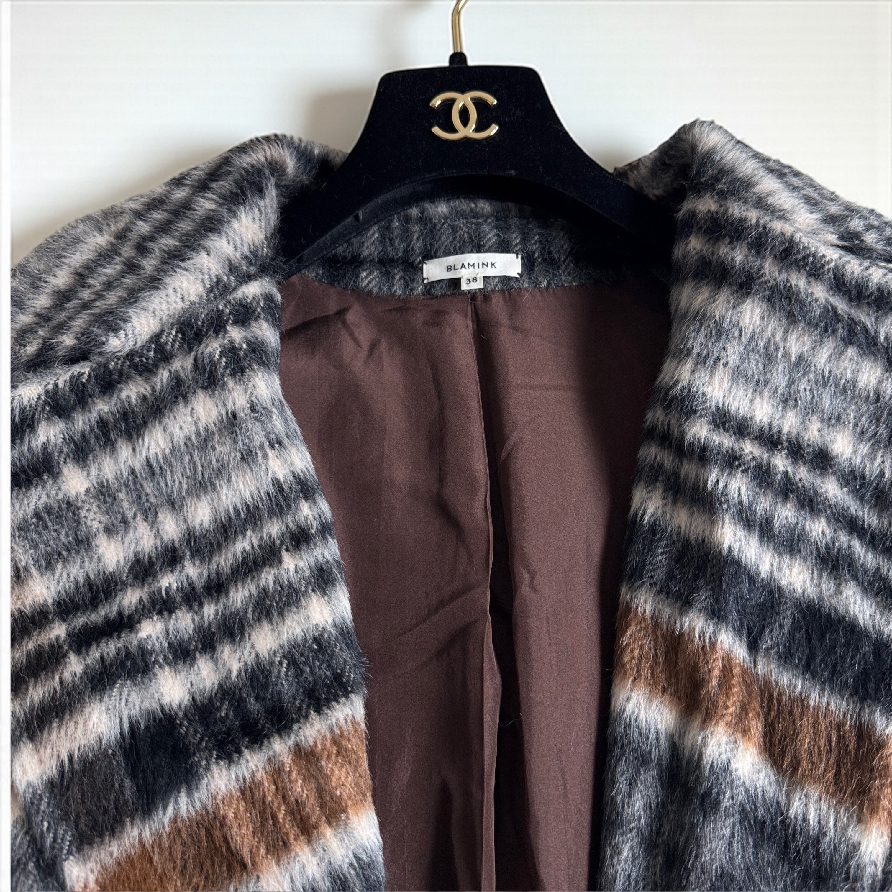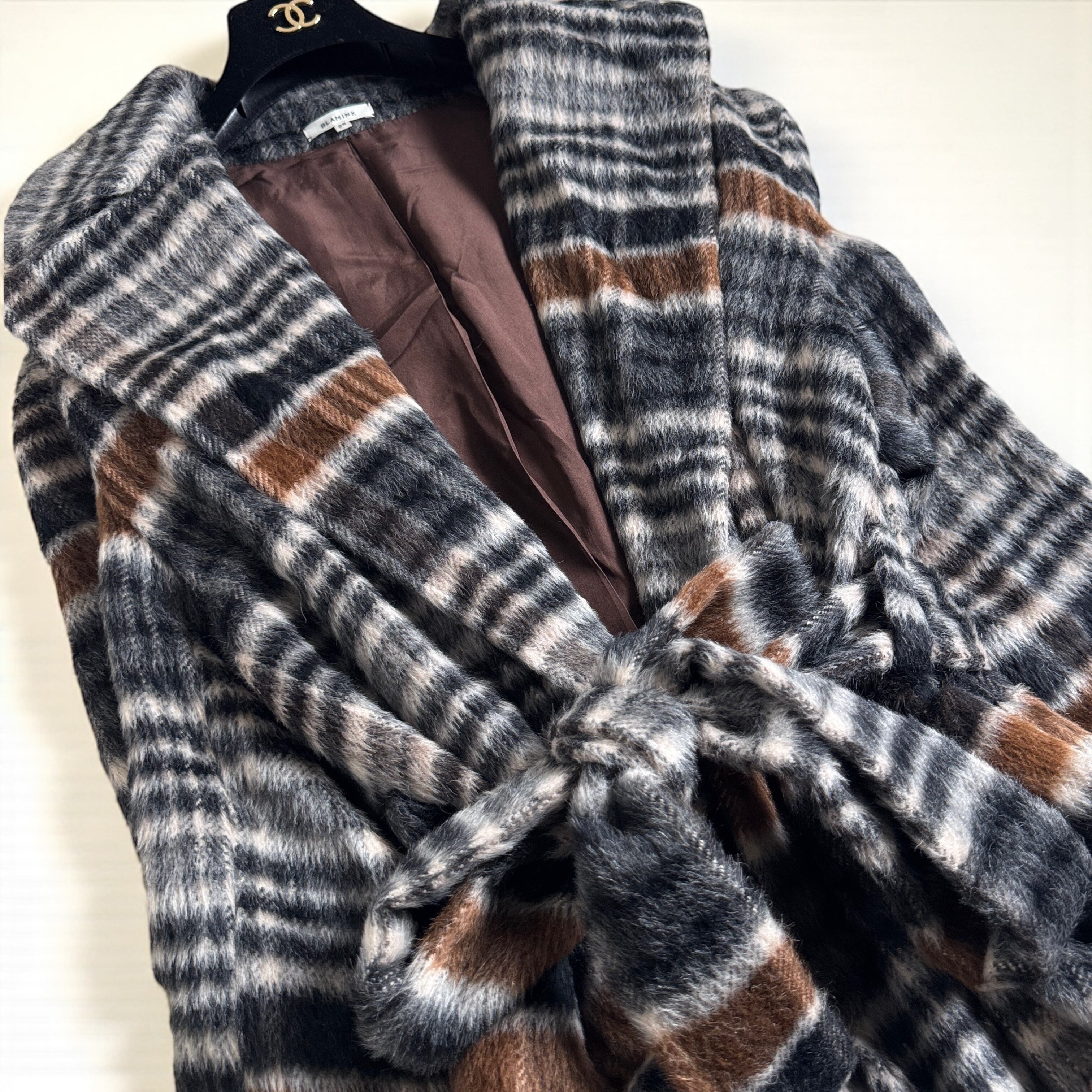 BLAMINK ブラミンク アルパカシャギー チェックロングコート